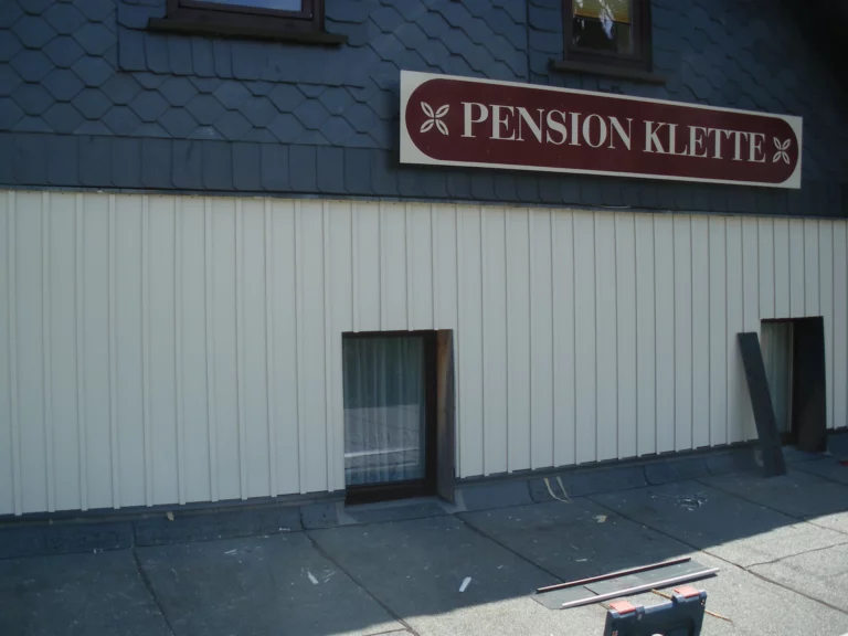 Wir bieten umfangreiche Dienstleistungen im Bereich der Fassadenverkleidung an, wobei wir Baustoffe wie Schiefer, Holz und Blech verwenden, um Ihren spezifischen Bedürfnissen gerecht zu werden.